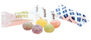 | Mini bonbons acidulés et colorés. Parfums aux fruits assortis ou menthe. Emballage papilloté personnalisé. |